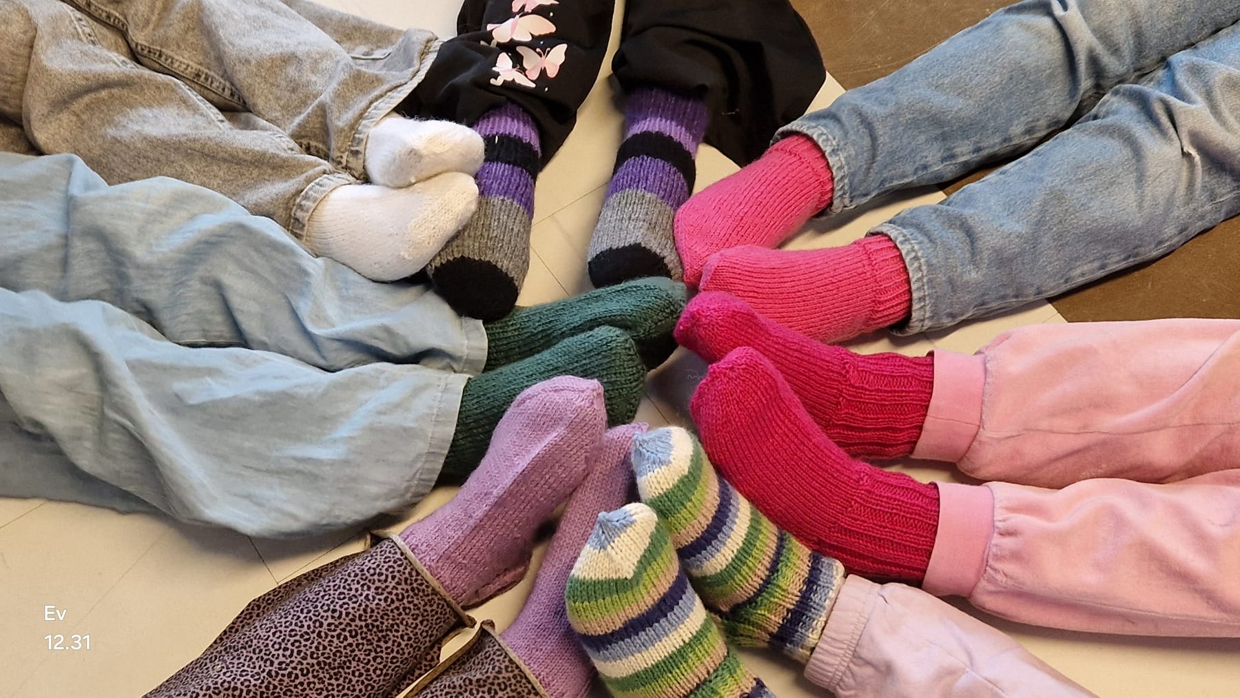 9.10.2025 Simon yhdistys luovutti Simon ekaluokkalaisille villasukat